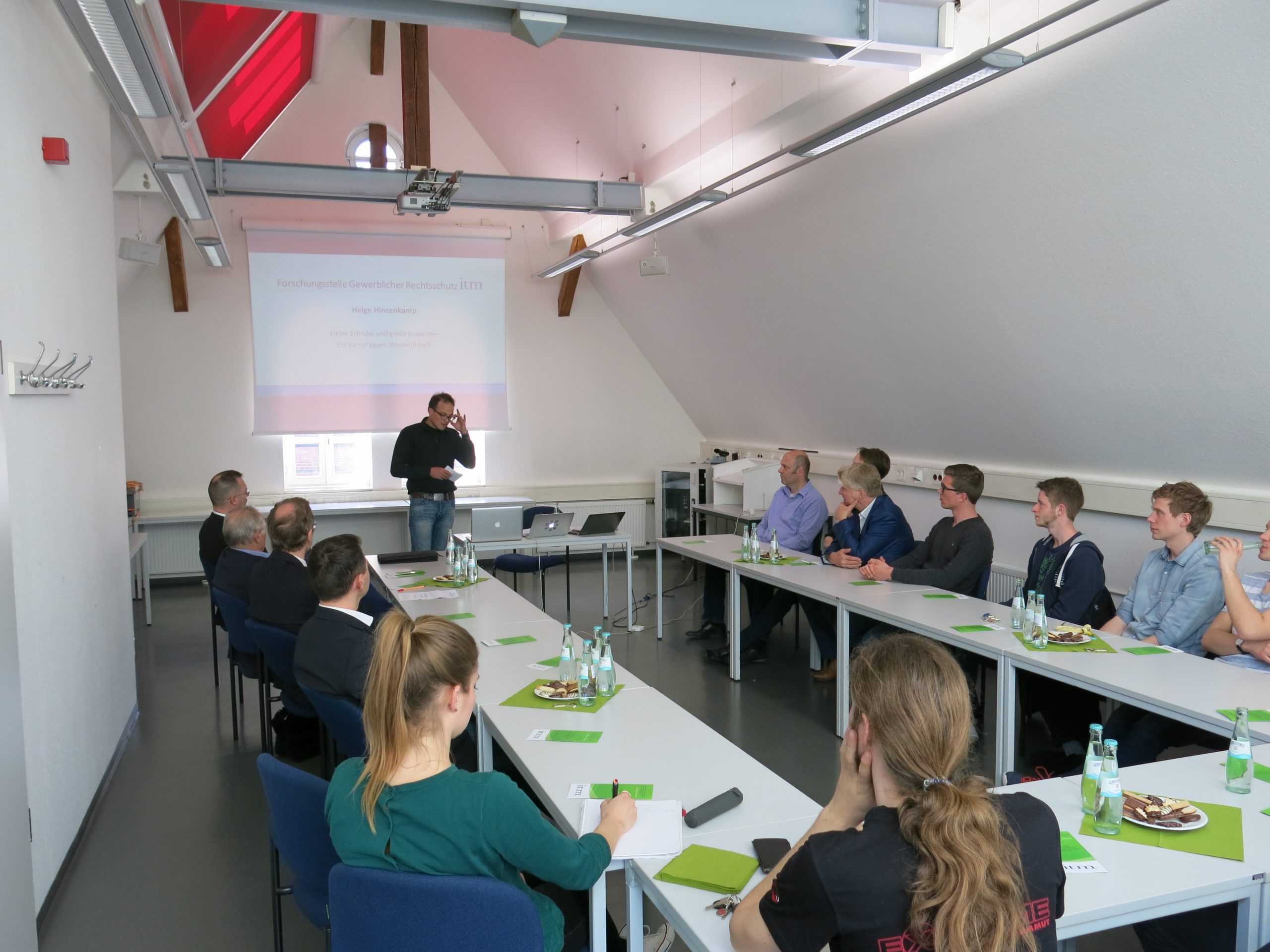 Helge Hinsenkamp, ein freiberuflicher TV-Journalist, widmete sich in einem gut besuchten Vortrag, wie auch schon in seinem preisgekrönten TV-Beitrag „Patentstreit“ für das ARD-Magazin „Plusminus“, den Problemen, die sich mittelständische Unternehmen stellen, wenn sie ihre Erfindungen gegen große Konzerne verteidigen müssen. Dabei wurde sowohl die juristische als auch die unternehmerische Seite beleuchtet.